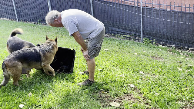 At 5 weeks every pup has been content to stay in the whelping box, but have begun whining to get out. So far, they just wait for one of us to pick them up. When they are in the side yard, they play, investigate, and take nice naps. it is ideal-- shady, breezy, birds singing and chirping, peaceful. Add to this a full belly, and you can see why the nap is so appealing.